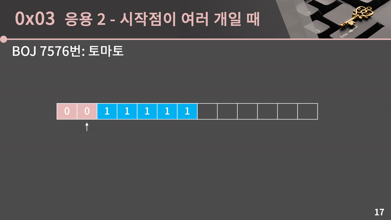 첫번째 0인 곳을 기준으로 거리가 1인 것들이 들어옴